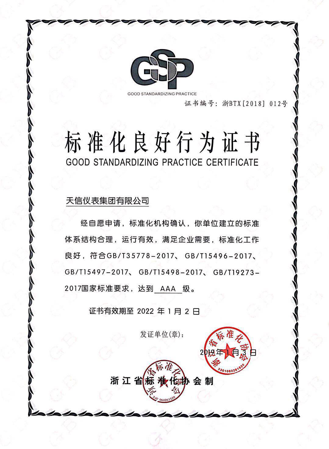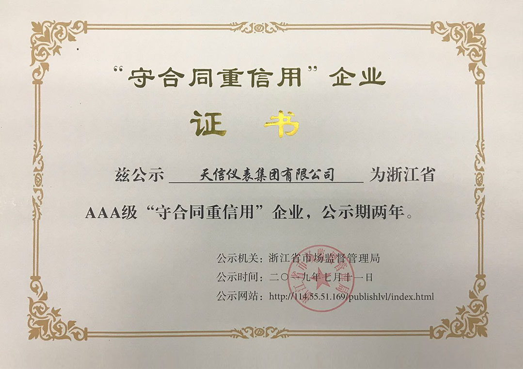ZJ Province AAA-level Trustworthy Enterprise Certificate